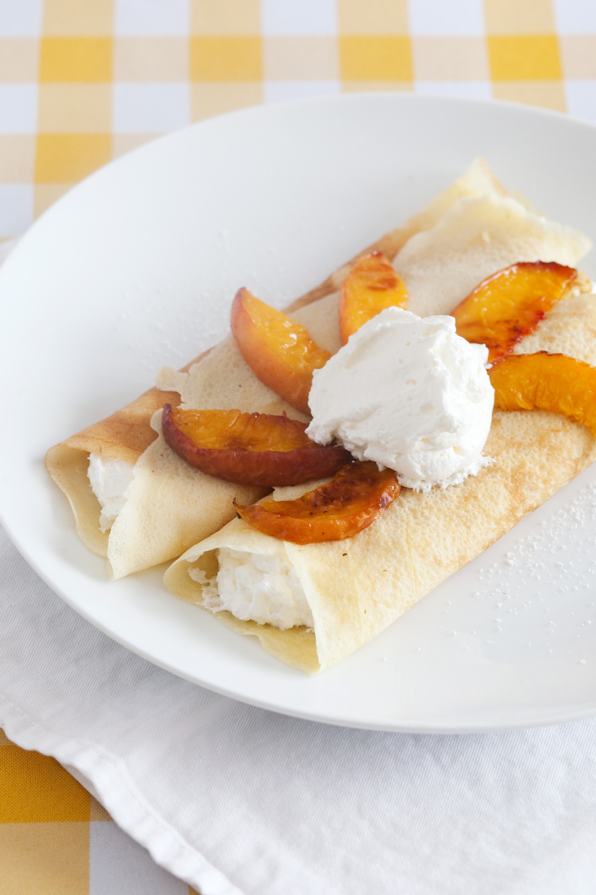 #End of Summer Crepe Buffet Making Nice in the Midwest, #crepes with grilled peaches cream, #Honey Cream Cheese Filled Crepes with Grilled Peaches.